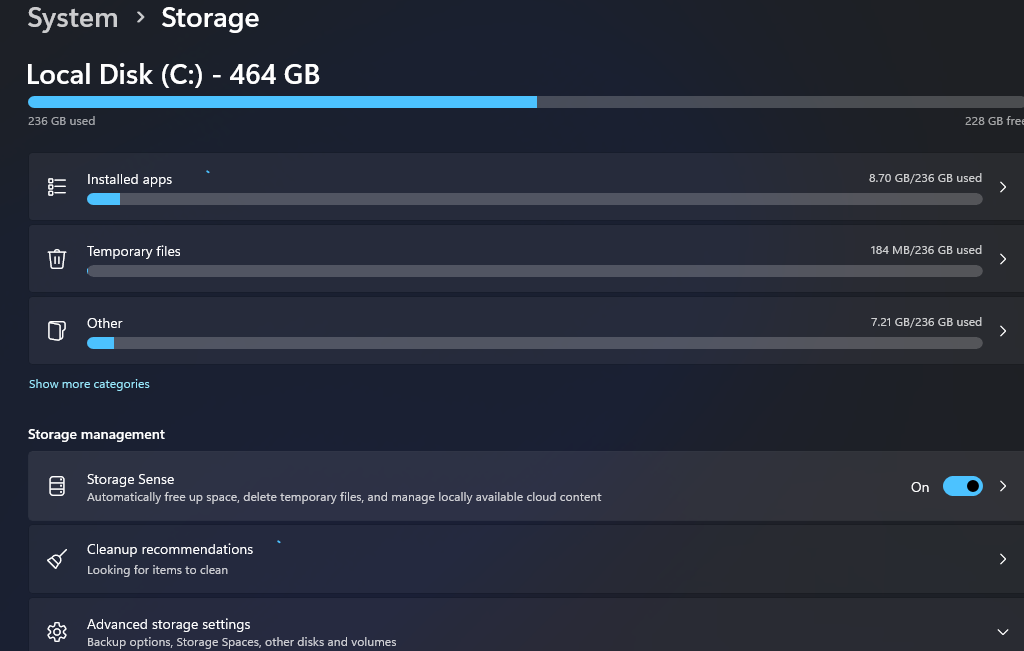 You need to enable the Storage Sense option. If it’s turned off on your computer, enabling it will automatically delete all the temporary and junk files on your computer. You don’t have to repeat the same process again and again; simply click a button to turn on your Storage Sense button.
