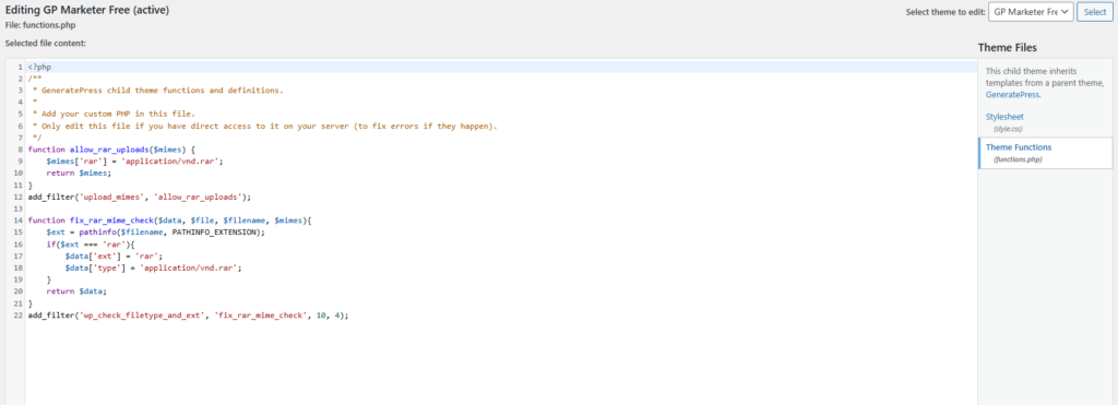 add_filter('wp_check_filetype_and_ext', 'fix_rar_mime_check', 10, 4);💾 Step 3: Save Changes